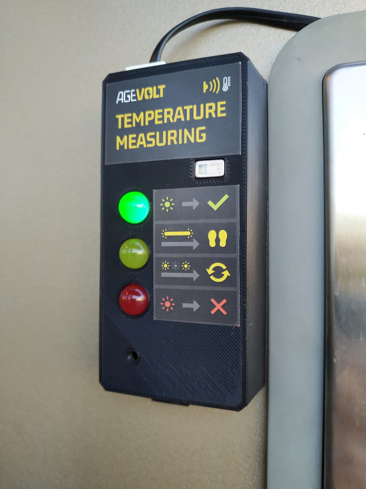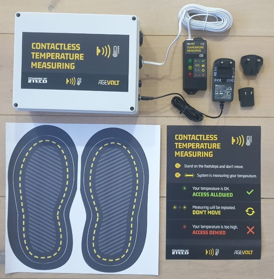 AgeVolt Thermo je postavený na komponentoch naší firmy Teco. Základem je centrální jednotka CP-1000. Grid-eye senzorem (C-IF-6400R) odměří návštěvníkovi tělesnou teplotu. Otevření dveří povolí jen v případě, že dotyčný nemá horečku. Díky infrazávorám zároveň může sledovat počet lidí v objektu. Když je dosáhnut stanovený limit, dveře zůstanou zavřené. Instalace je velmi jednoduchá, díky Plug&Play řešení není nutný zásah do objektu, zařízení stačí připojit do zásuvky.