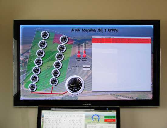 Systém řízení technologií výroby elektrické energie ve fotovoltaické elektrárně Vepřek. Realizace: KYBERTEC s.r.o.