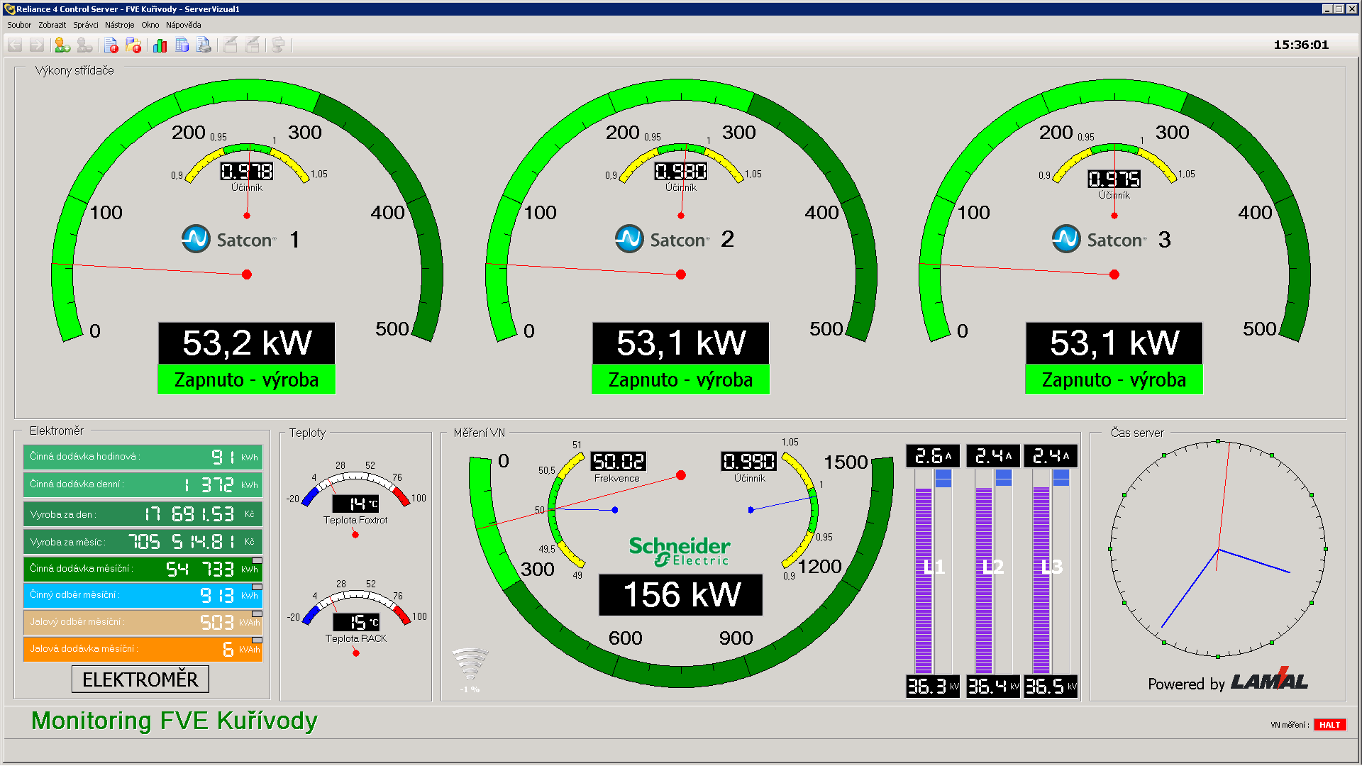 Monitoring fotovoltaických elektráren FVE Kuřívody a FVE Falcon Mimoň. Realizace: LAMAL s.r.o.