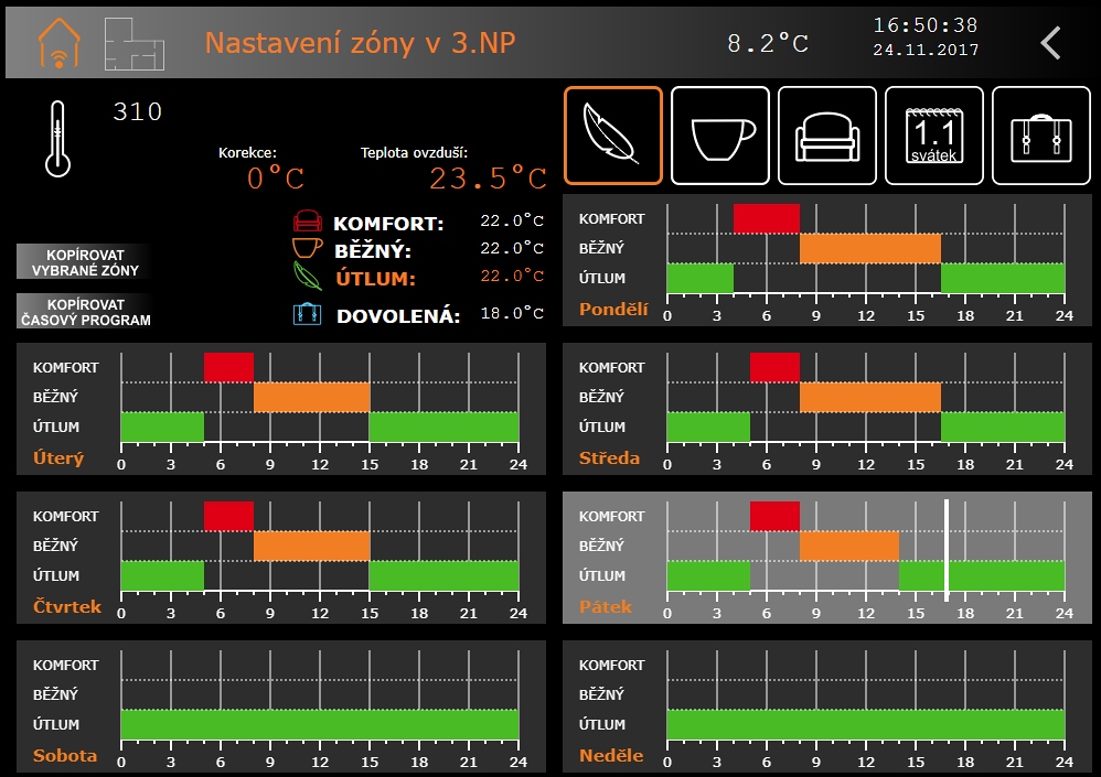 Celý systém lze mimo dotykové ovladače spravovat prostřednictvím intuitivní grafické vizualizace jak s přihlášením administrátora, tak i uživatele s definovanými užvatelskými právy.