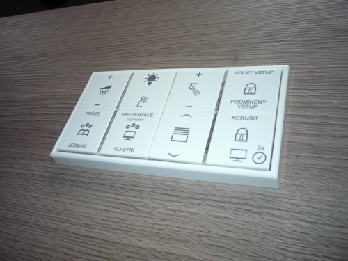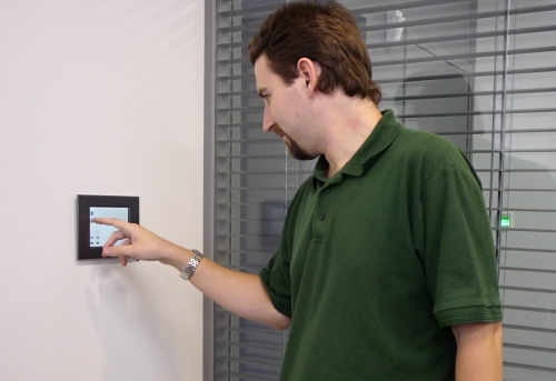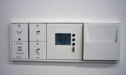 Uživatelé spouštějí jednotlivé funkce automatizovaného systému prostřednictvím nástěnných tlačítek (JUNG). Kvůli maximálnímu komfortu jsou tlačítka nainstalována také na ploše pracovních stolů. V zasedací místnosti mají navíc uživatelé k dispozici nástěnný dotykový diplej. Kromě toho lze vše ovládat přímo z tabletů, což umožňuje ovládání systému i na dálku.