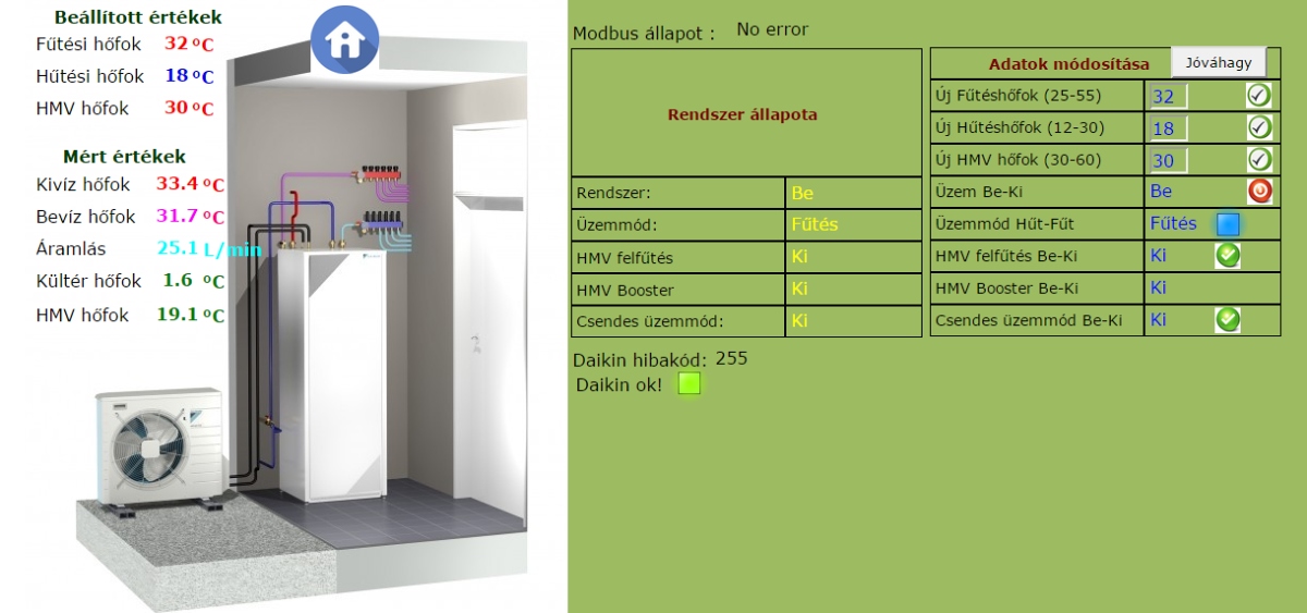 • všechny A/C jednotky (Daikin tepelné čerpadlo / RS-485 Modbus komunikace),