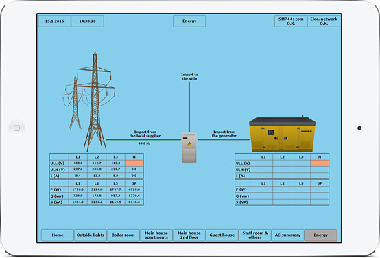 Letní sídlo na ostrově ve středozemí prošlo v letech 2013–2014 kompletní rekonstrukcí. Kromě jiného i kompletního technického zázemí.  Cílem integrace všech technologií do jednoho celku byl kompletní přehled, jednoduchá dostupnost a ovládání.