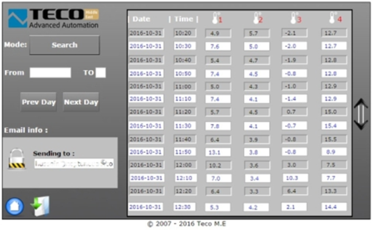 Teplota uvnitř chladících spotřebičů je měřena každých 10 minut a naměřené hodnoty jsou uchovávány v systému a také zasílány stanovené osobě na email. Naměřené hodnoty jsou uchovávány v databázi, která je k dispozici pro případné budoucí využití, například během auditu. Při vychýlení teploty od požadovaných hodnot nastavených uživatelem se okamžitě spustí alarm a majitel dostane také upozornění na své mobilní zařízení.