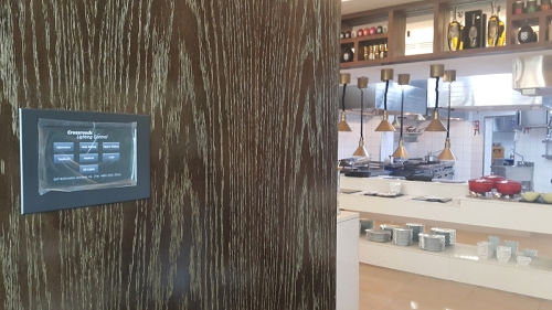 V restauraci mohou nyní pracovníci snadno ovládat osvětlení a scény z jednoho místa pomocí dotykového panelu na stěně. Mají také další možnosti ovládání přes smartphony, tablety nebo počítači.