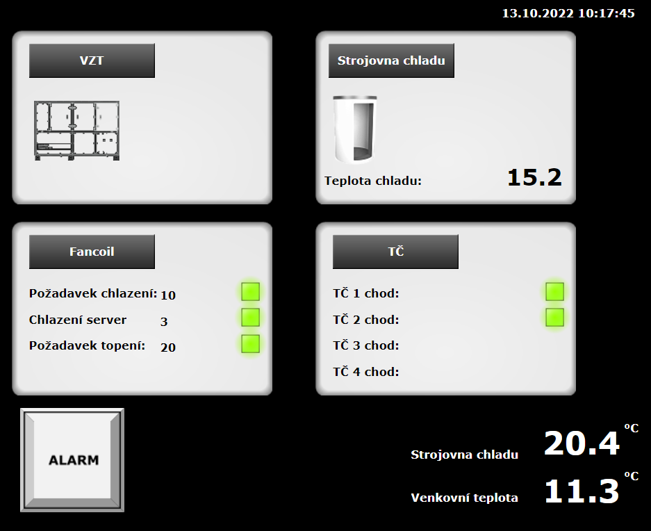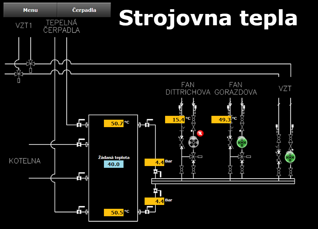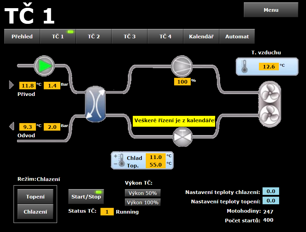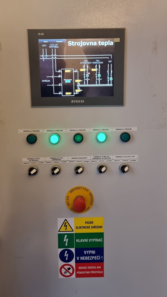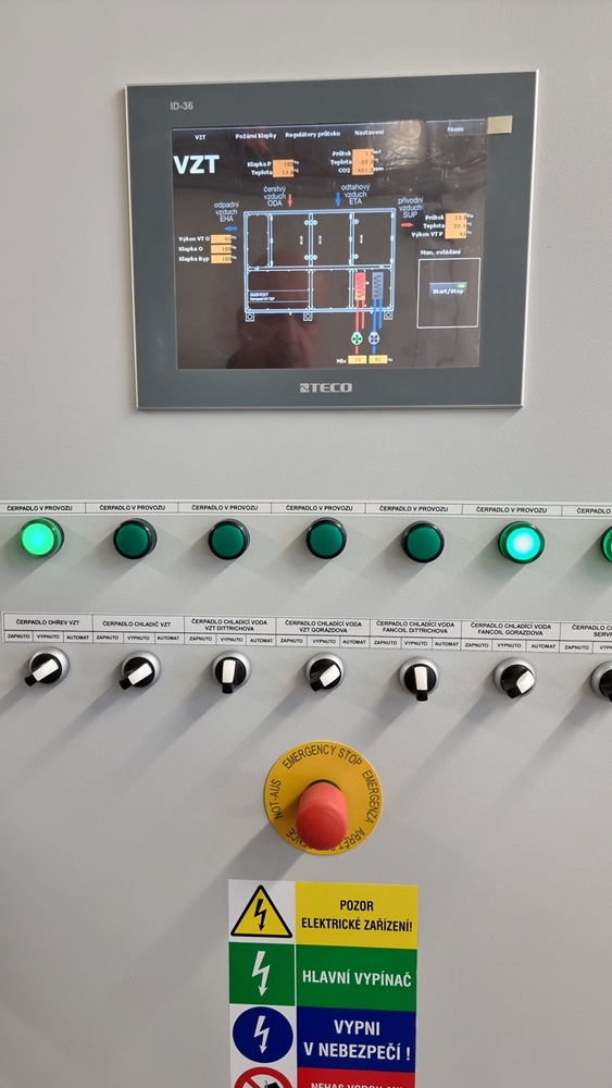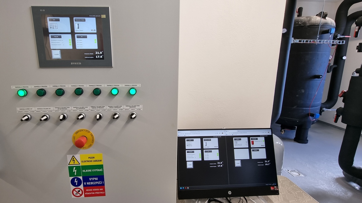 Řídicí systém Tecomat Foxtrot zde řídí a integruje následující technologie: