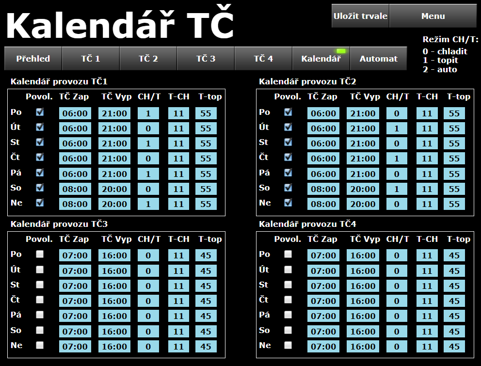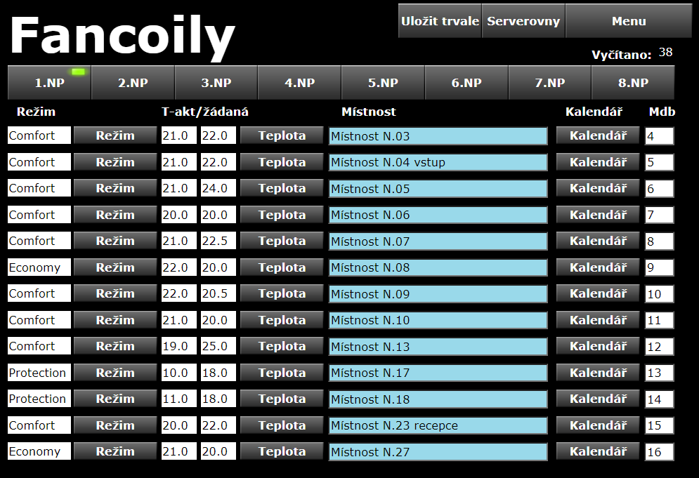 • řízení teploty v místnostech