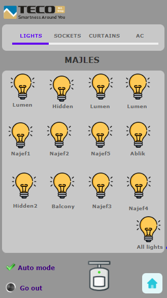 Světla v apartmánu lze snadno ovládat s pomocí ikon na obrazovce mobilu/tabletu. Obyvatelé apartmánu si také v systému mohou nastavit automatické zapnutí světel po vstupu do místnosti.