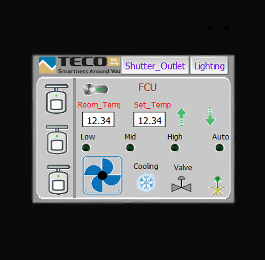 Obzvlášť v pouštní oblasti je ovládání teploty a udržování jejich požadovaných hodnot v jednotlivých místnostech nezbytné. Se systémem Tecomat Foxtrot je ovládání systému pro nastavení teplot velmi snadné. Stejně tak je tomu v případě ovládání žaluzií, které lze také pohodlně ovládat s pomocí telefonu / tabletu.