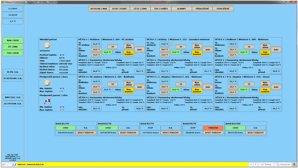 Řízení systému ústředního vytápění budovy výchovného ústavu ve Střílkách - ČR. Realizace: TEVA Elektro, s.r.o., GEOVAP, spol. s r.o.