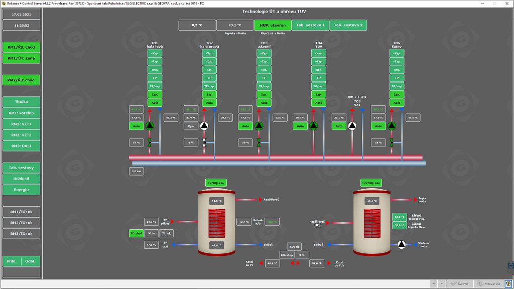 V roce 2019 došlo k rekonstrukci haly a s ní k implementaci našeho řídicího systému Tecomat Foxtrot na řízení systému vytápění a chlazení celého objektu a osvětlení haly. Akci realizovala společnost GEOVAP ve spolupráci s firmami ELG-ELECTRIC, s. r. o., a CERGOMONT, s. r. o.
