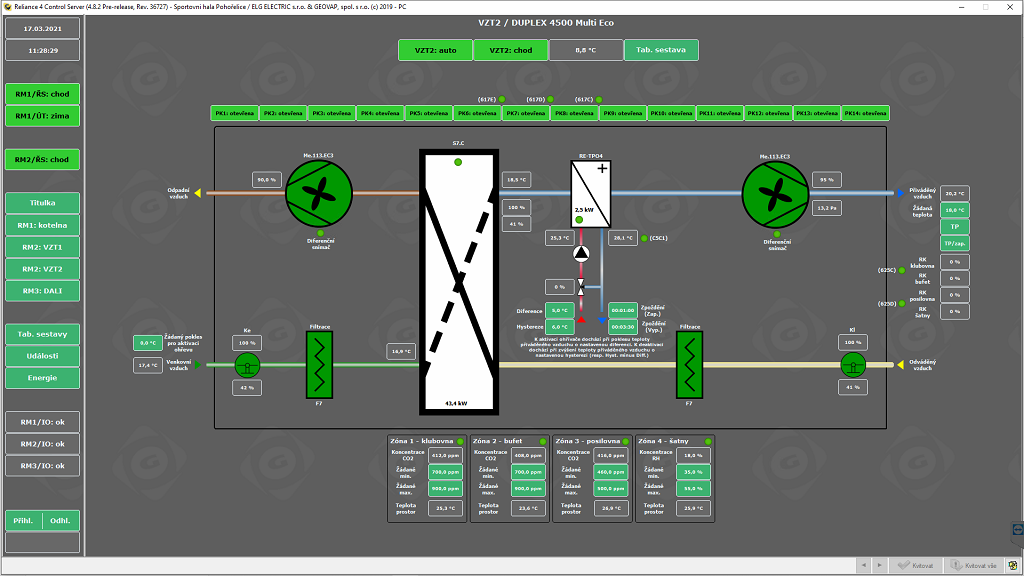 - vzduchotechnickou jednotku Atrea DUPLEX 4500 MultiEco (klubovna, bufet, posilovna, šatny)