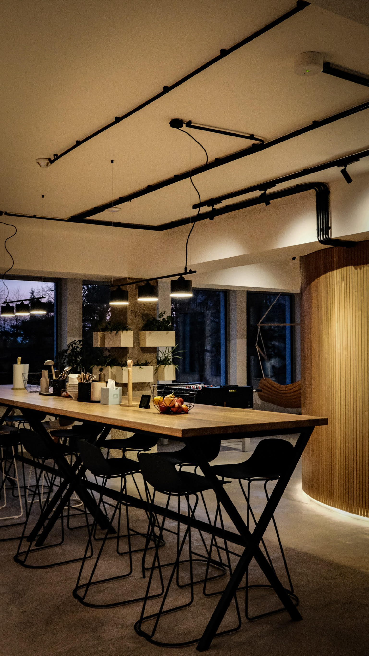 Na budově kompletně řídíme osvětlení, přičemž svítidla v části budovy, kde je umístěno oddělení vývoje a podpory jsou ovládány pomocí DALI pro světelný komfort za každého ročního období či počasí. Systém je rovněž integrován s bezpečnostním systémem, takže při aktuálním střežení objektu zůstávají svítit jen svítidla, které si klient zvolil. Další návaznosti jsou spuštěny v případě vniknutí narušitele, nebo požárního poplachu. Samozřejmostí je ovládání osvětlení loga v exteriéru dle intenzity venkovního osvětlení.