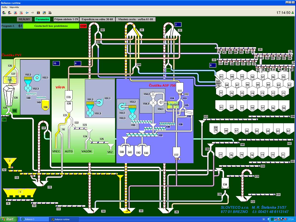 Řízení technologií obilného sila v Rimavské Sobotě na Slovensku. Realizace: SLOVTECO s.r.o.