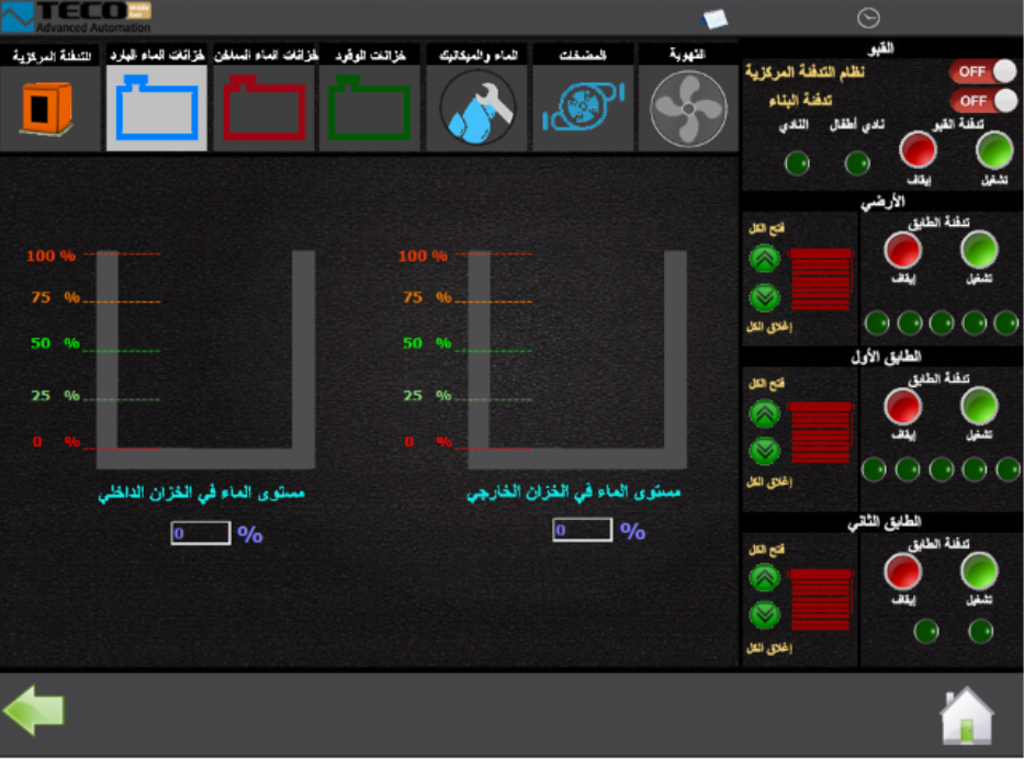 Monitoring zásoby vody a paliva v nádržích: Systém Foxtrot ve vile vyhodnocuje také zásobu tekutin ve vodních a palivových nádržích. Když jejich hladina klesne pod 20 % stanovené kapacity, majitel vily o tom dostane upozornění. Systém také zaznamená jakýkoli nežádoucí únik kapaliny z nádrží.