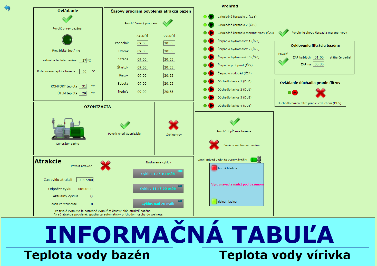 Rekonstrukcí prošlo také řízení wellness části hotelu. Zde je řízena úpravna vody (filtrace, chlorování, ozonizace), ohřev vody v bazénu a vířivce a také čerpadla vody pro jednotlivé atrakce v bazénu. V bazénové hale přibyl televizor, na němž jsou pro návštěvníky zobrazeny všechny potebné informace – teplota vody v bazénu a vířivce, aktuální vlhkost vzduchu, čas a venkovní teplota.