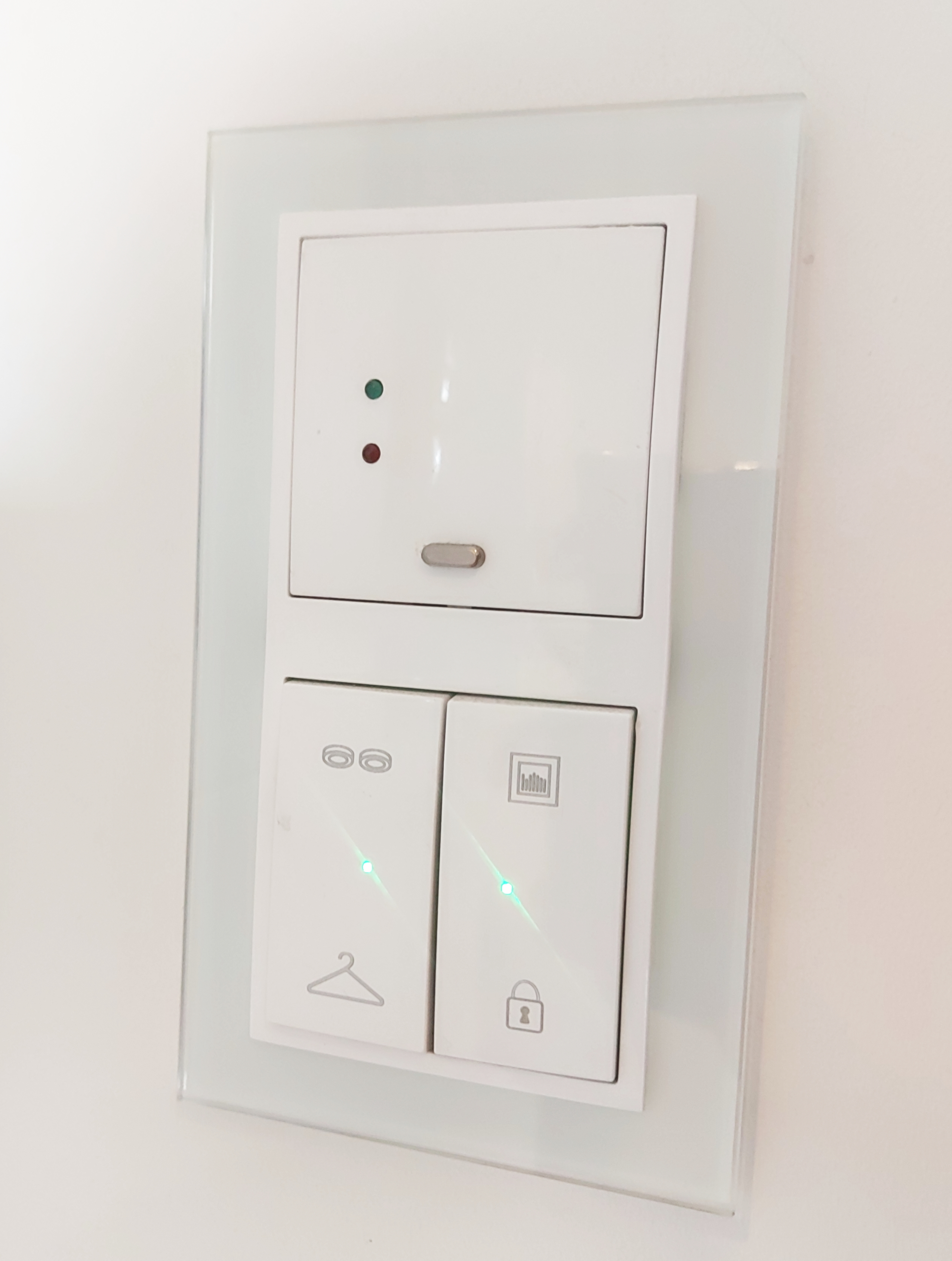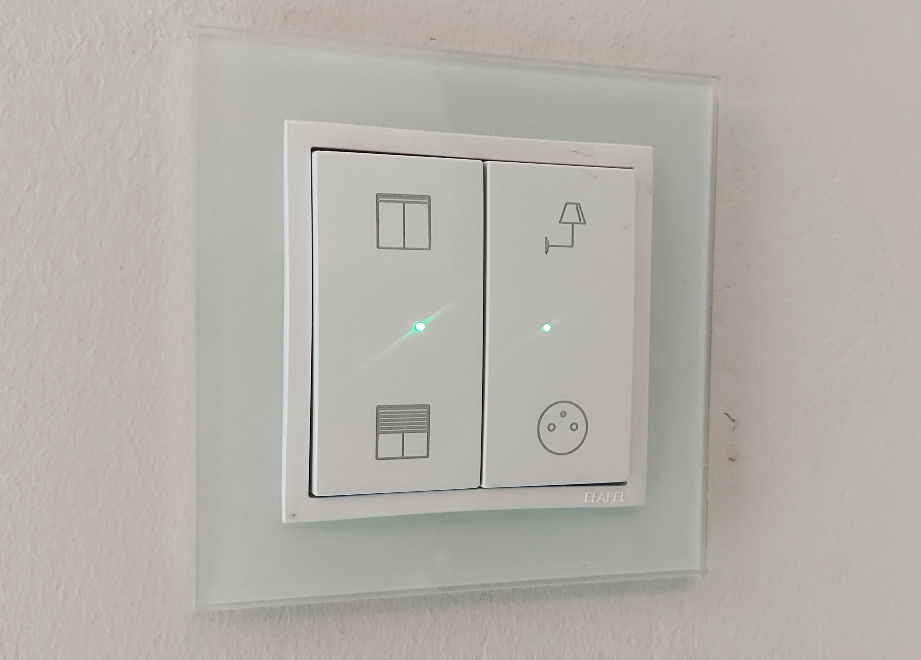 Ve vzorových apartmánech jsou použity různé druhy vypínačů od klasických přes sběrnicové mikrotlačítkové až po luxusní dotykové ovladače řady Touch@Glass. Dále je možné ovládat svítidla, rolety apod. pomocí iPadů s aplikací iFoxtrot umístěných do designové dokovacích stanic iRoom, zabudovaných do stěny. iPady je tak možné vyjmout a vzít kamkoliv s sebou a poté znovu uložit.