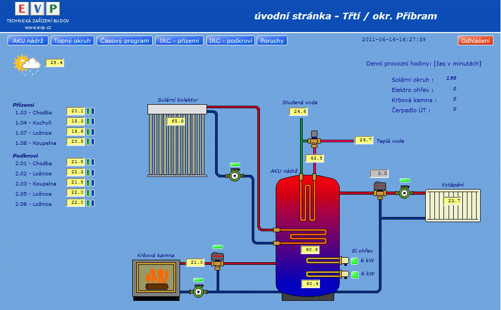Systém řízení a vizualizace vytápění rodinného domu s více zdroji tepla. Realizace: EVP v.o.s.