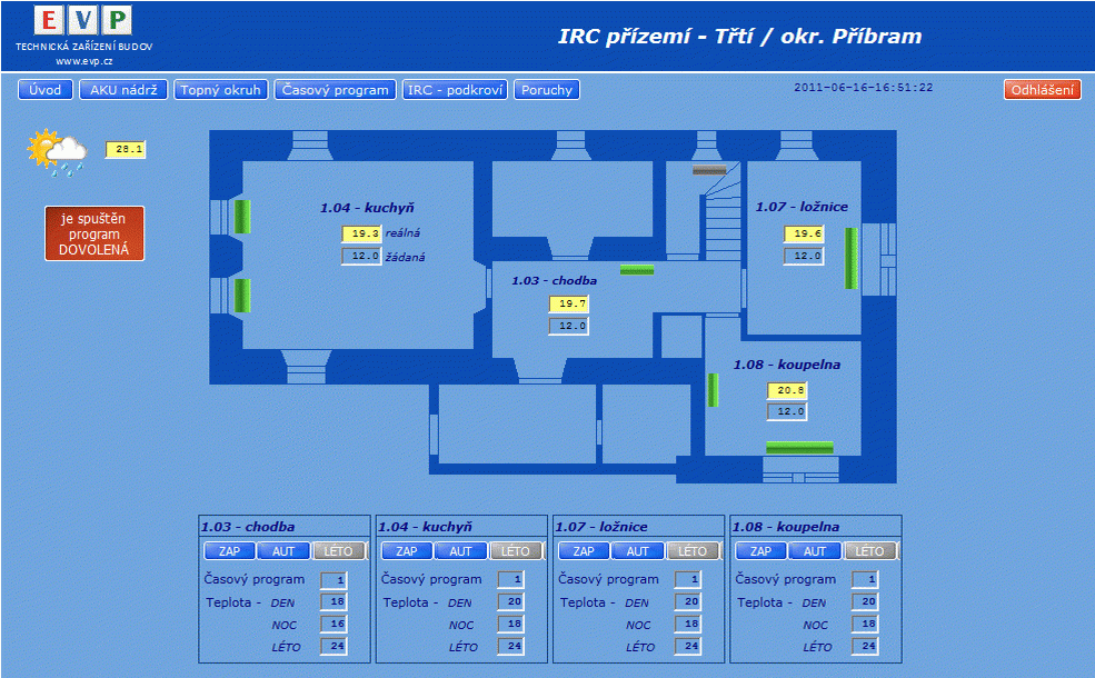 - časové programy vytápění pro každou vytápěnou místnost