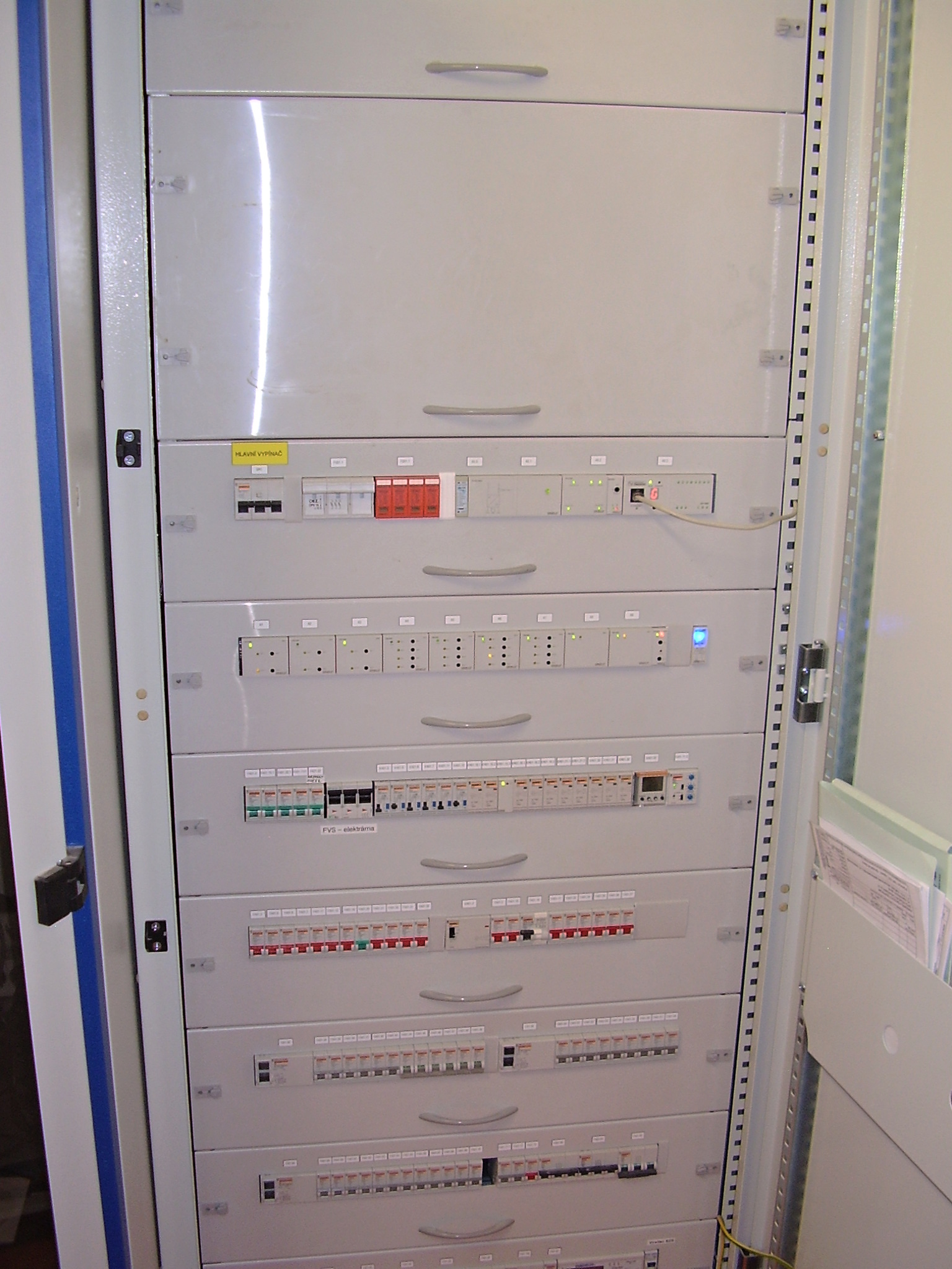 Celý systém se skládá ze dvou rozvodných skříní. Hlavní rozvodná skřín je osazena řídicím automatem Tecomat Foxtrot CP-1004, periferními moduly na sběrnici CIB a elektrickými rozvody. V podružném rozvaděči je osazen externí komunikační master, periferní moduly na sběrnici CIB a elektrické rozvody.