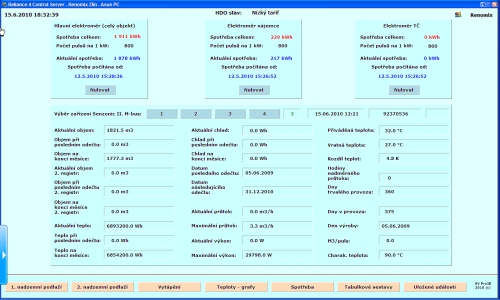 - měření spotřeby elektrické energie prostřednictvím pulzních elektroměrů (hlavní elektroměr, elektroměr nájemní plochy a elektroměr tepelného čerpadla) - archivace dat do databáze dBase,