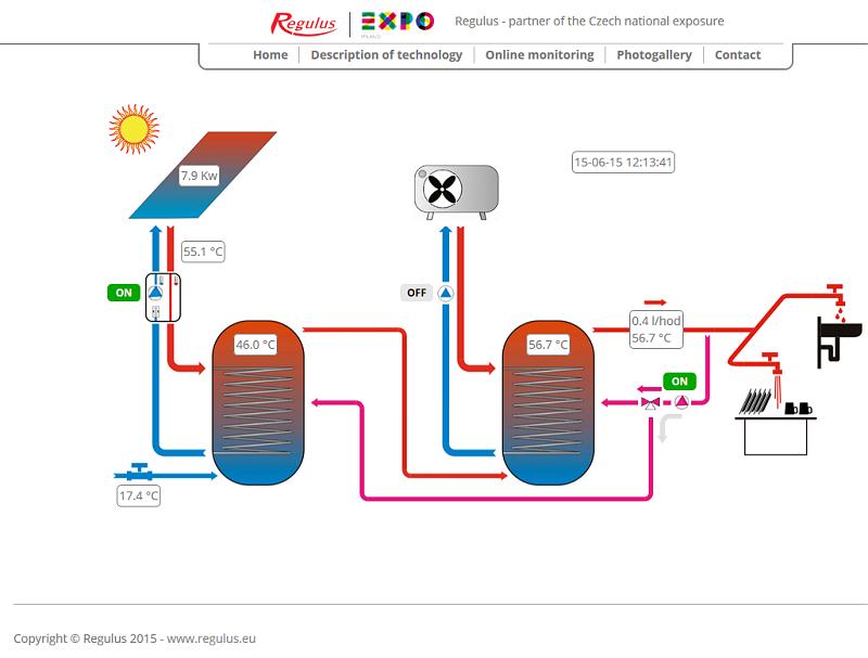 Po celou dobu výstavy je/bylo možno sledovat on-line aktuální stav přípravy teplé vody na specializované stránce: http://expo.regulus.eu/cz/online-monitoring.