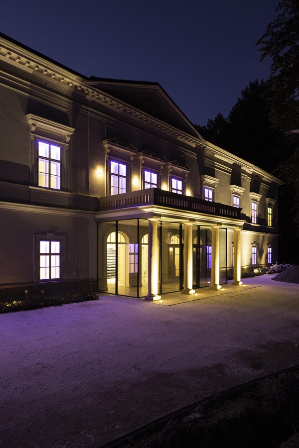 Fasáda hotelu, osvětlení cest v zámeckém parku a osvětlení kolonády je osazeno řízeným spínaným a stmívaným osvětlením s předřadníky s rozhraním DALI. Přístupová cesta začíná dálkově ovládanou bránou a je osazena řízeným osvětlením.