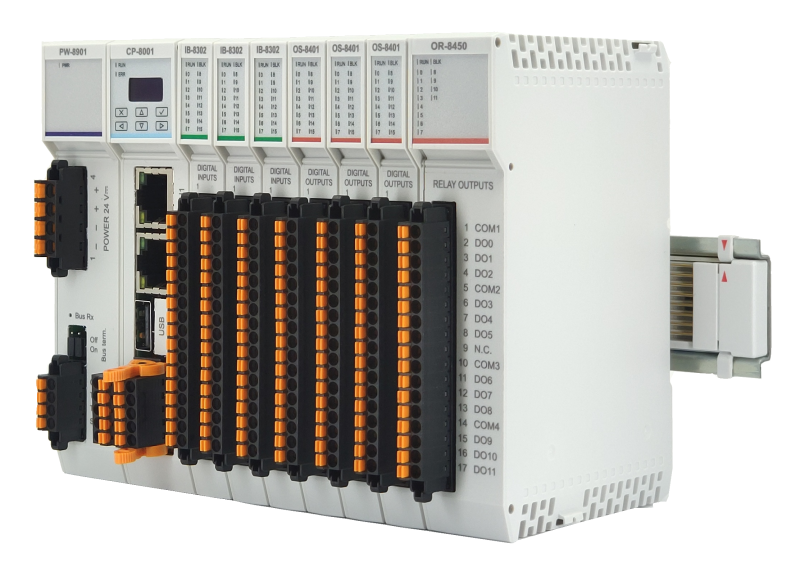 TC800 je plně modulární PLC systém určený pro aplikace s velkým rozsahem vstupů a výstupů.